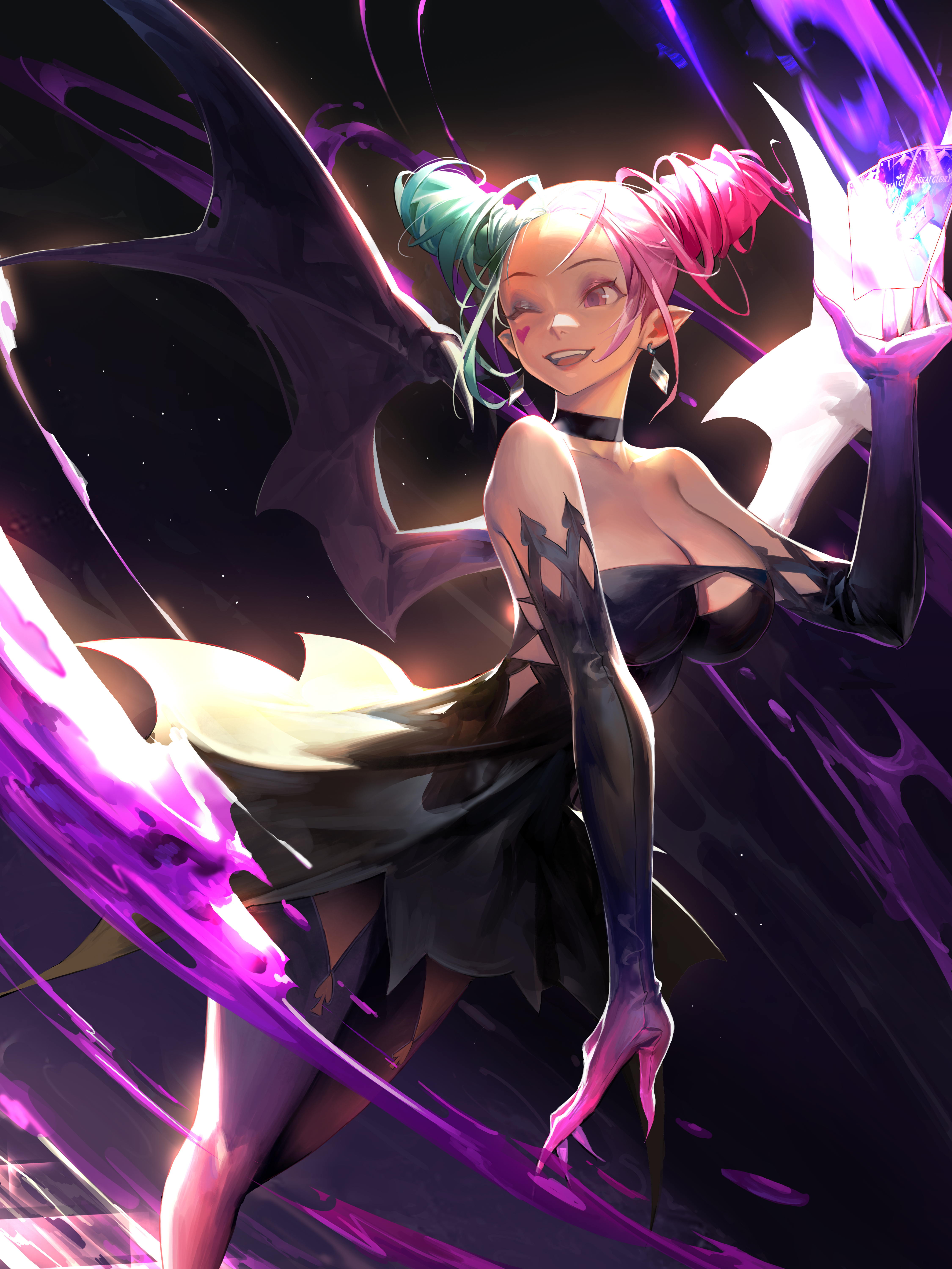 Although Seraphiel's perfection and virtuous nature were celebrated by all, it became a constant source of irritation for Charlize. Having to always live in the shadow of her sister's flawless reputation, Charlize grew restless and sought to carve her own path: one that often strayed into more skewed and chaotic realms. This led her to uncover a deeper, more complex aspect of her nature, blending her innate charm with a newfound mastery of illusion and chaos.